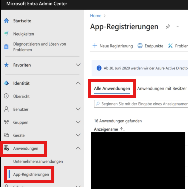 - Wählst "Anwendungen" -> "App-Registrierungen" -> "Alle Anwendungen" aus und klickst anschließend auf die gewünschte Anwendung
