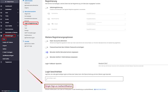 Wenn Du das SSO gebucht hast, kannst du es im administrativen Bereich in den Einstellungen unter App -> Module -> SSO aktivieren und anschließend unter "Login & Registrierung" nutzen.